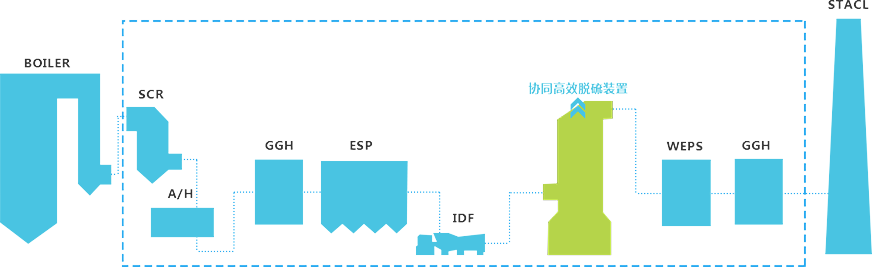 煙氣污染物協(xié)同脫除技術(shù)系統(tǒng)(SRS)是指在一設(shè)備內(nèi)同時(shí)脫除兩種及以上煙氣污染物,或者為下一流程設(shè)備脫除污染物創(chuàng)造有利條件,實(shí)現(xiàn)煙氣污染物在多個(gè)設(shè)備中高效聯(lián)合脫除,同時(shí)實(shí)現(xiàn)良好的節(jié)能效果的技術(shù)。國能中電系統(tǒng)地研究脫硝、除塵和脫硫之間的協(xié)同關(guān)系,充分考慮各類污染物的綜合脫除效果,通過系統(tǒng)性的設(shè)計(jì),達(dá)到多種污染物的協(xié)同脫除的目的,實(shí)現(xiàn)最優(yōu)的排放指標(biāo)、最好節(jié)能效果和環(huán)保裝置的運(yùn)行經(jīng)濟(jì)性。